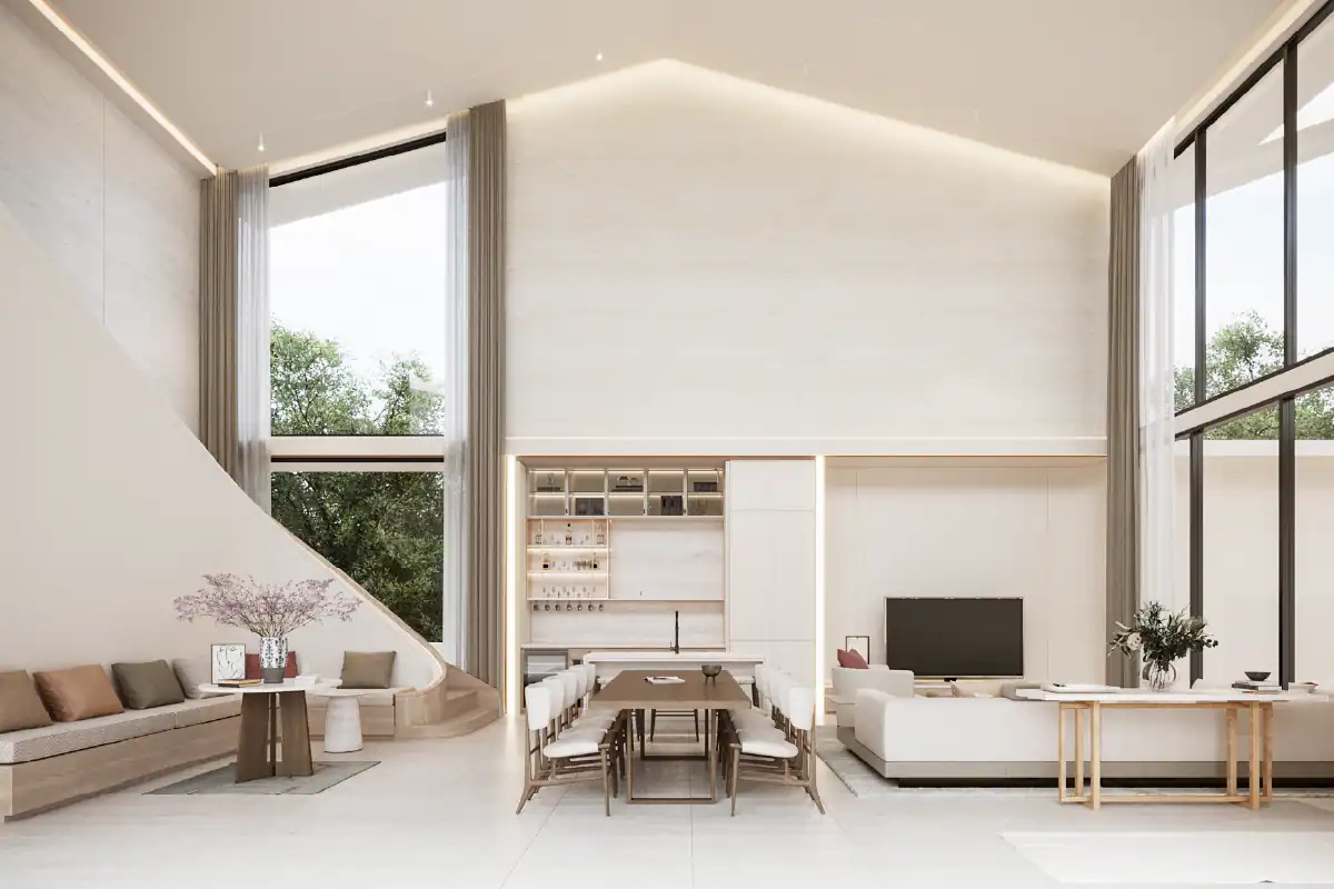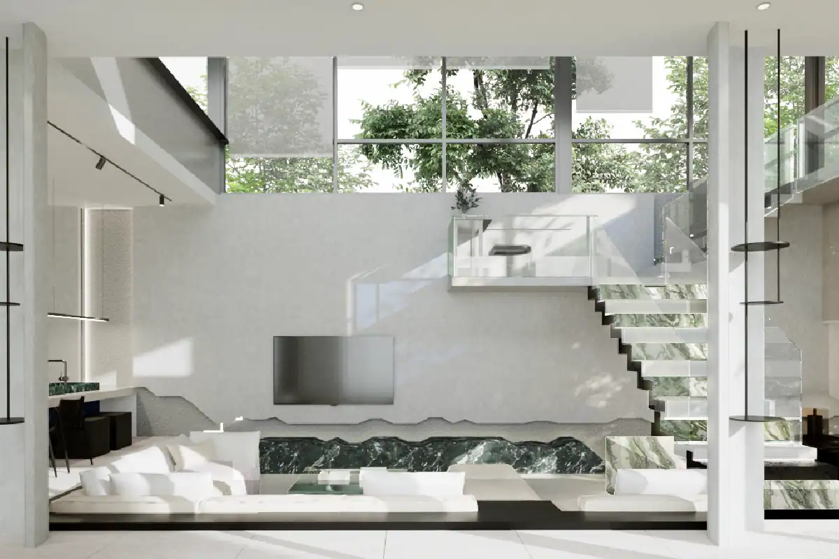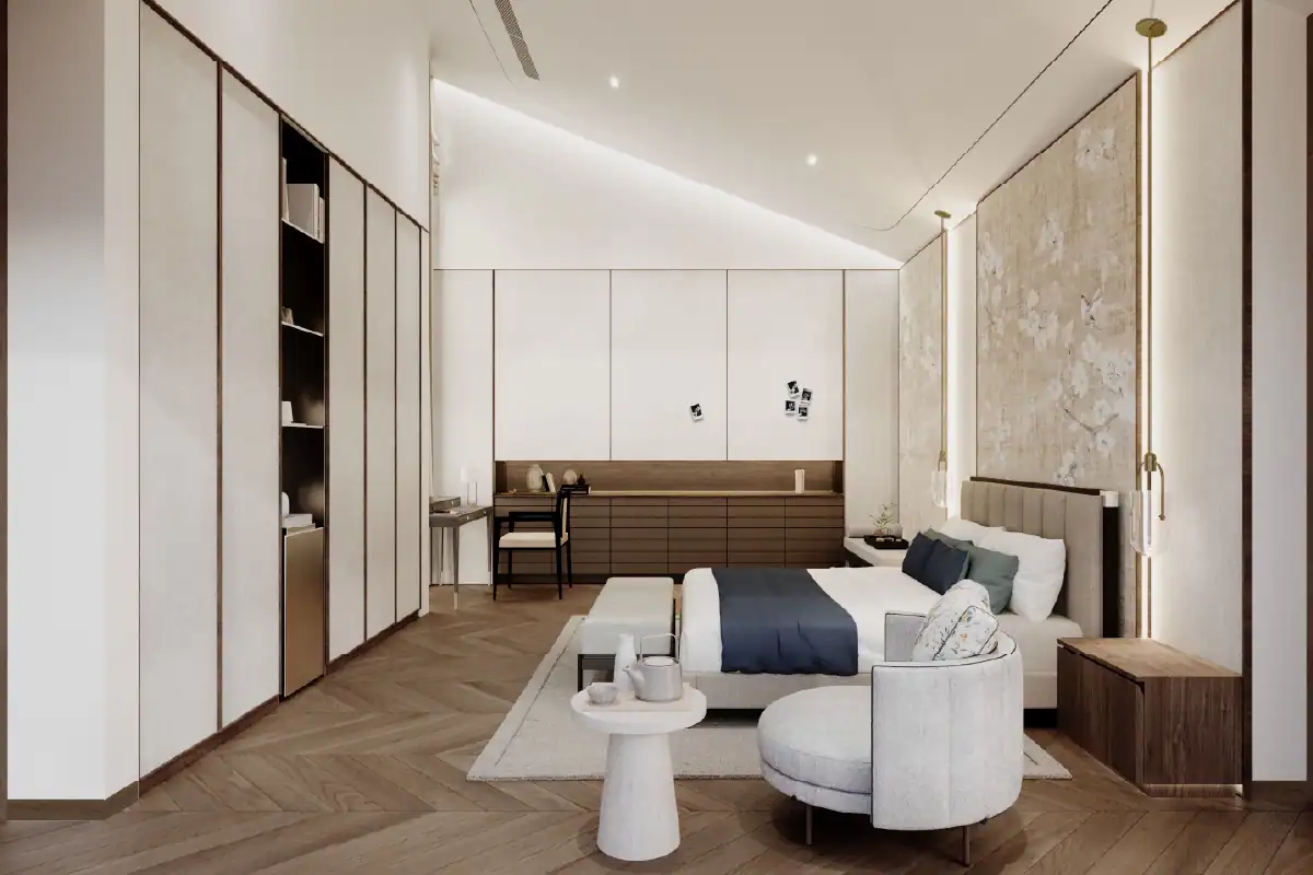 The project contains 5 buildings for an extended family of 4. The area consists of 1 public building for formal reception and entertainment, and 4 buildings for each family. Each building has its own unique design to accomondate different requirement and preference while maintaining a linkage between each design to unite the whole picture.
