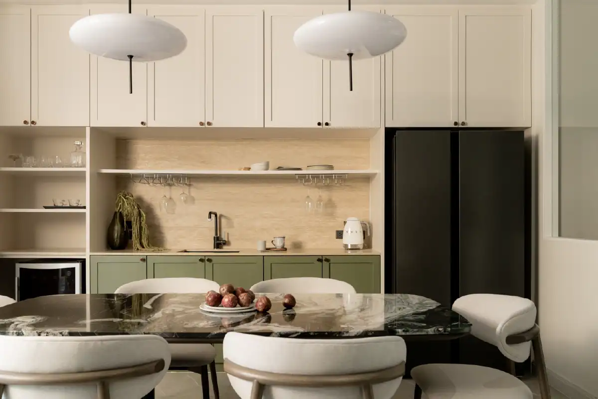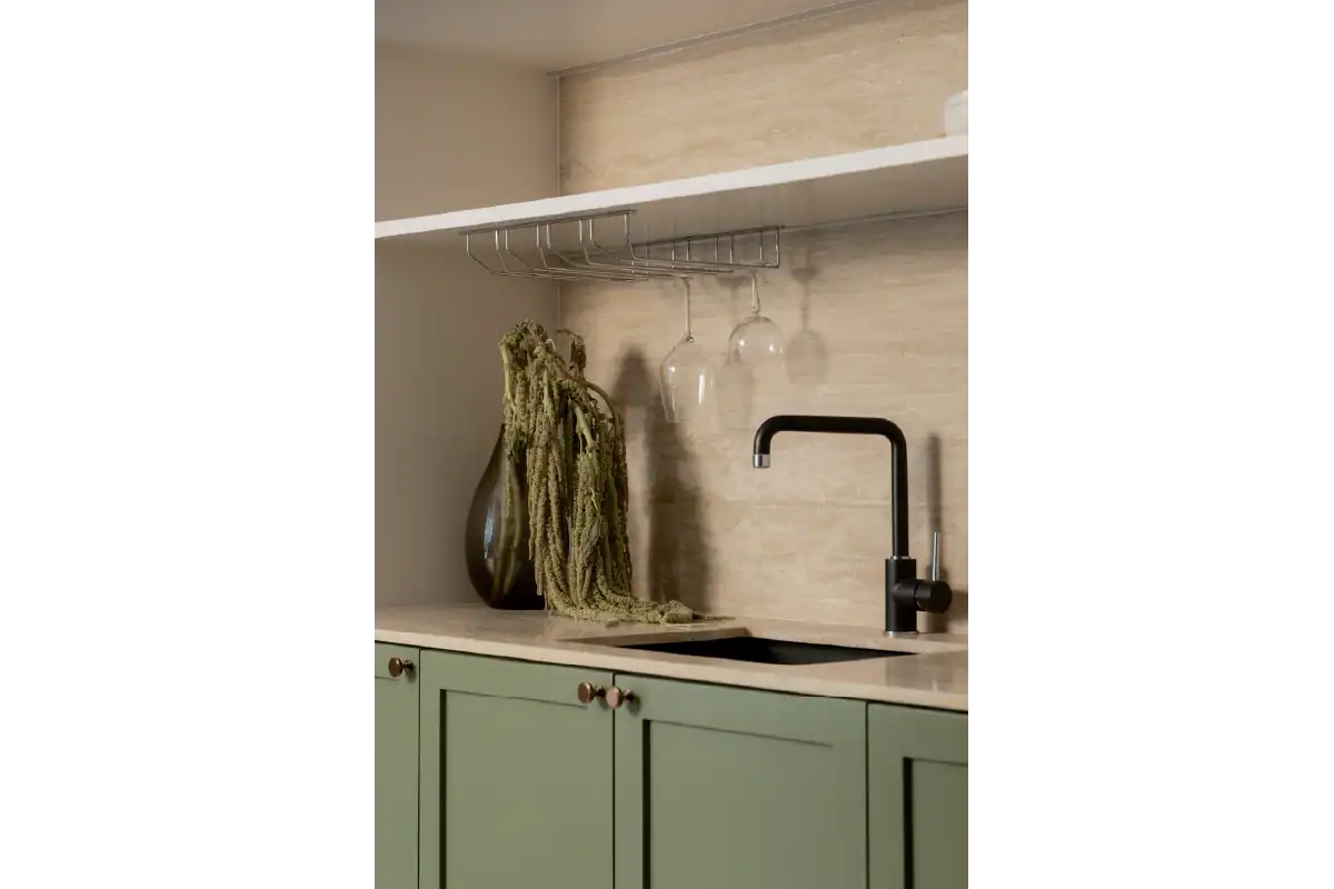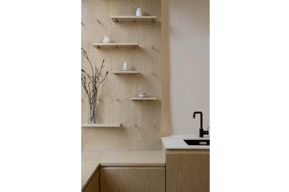 This family home was designed to reflect the unique personalities of its four members. Balancing diverse preferences, the interior creates a cozy yet playful atmosphere where everyone feels at home. Warm wood tones offer a calm, grounding presence for the parents, while playful mosaic patterns and green accents add a fun and lively touch that speaks to the energy of the children. The result is a harmonious space that feels both thoughtful and spirited — a home tailored for connection, comfort, and character.