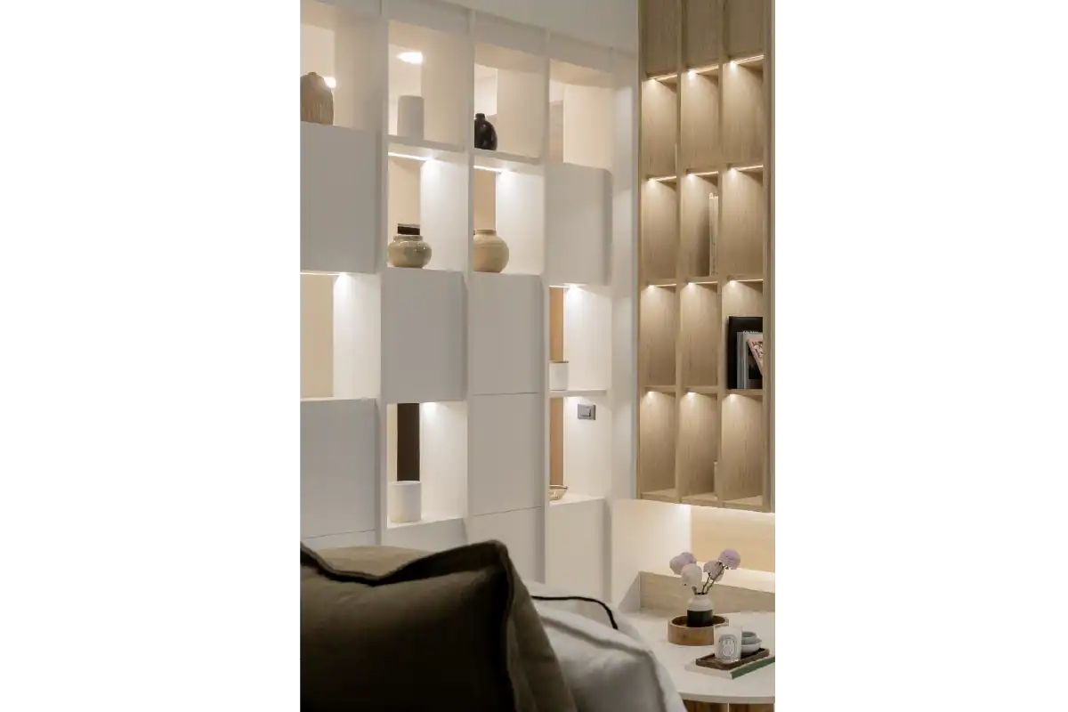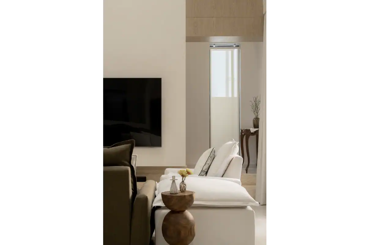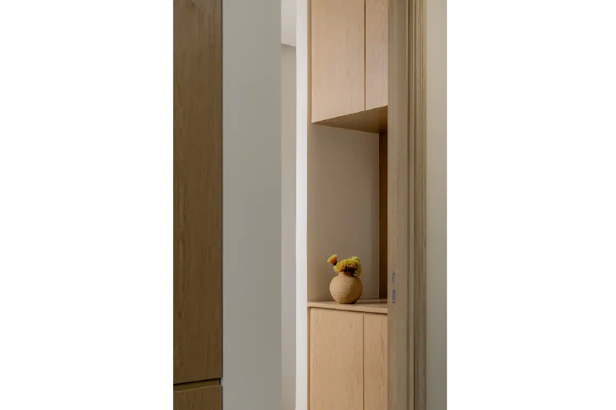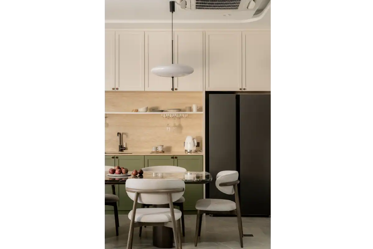This family home was designed to reflect the unique personalities of its four members. Balancing diverse preferences, the interior creates a cozy yet playful atmosphere where everyone feels at home. Warm wood tones offer a calm, grounding presence for the parents, while playful mosaic patterns and green accents add a fun and lively touch that speaks to the energy of the children. The result is a harmonious space that feels both thoughtful and spirited — a home tailored for connection, comfort, and character.