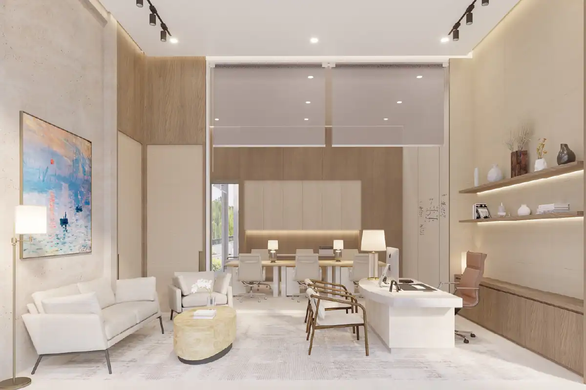 This project is a design for a home office to arrange trainings for senior staff and directors. The first floor is an office area whearas the second area is a residence for founders and senior directors.