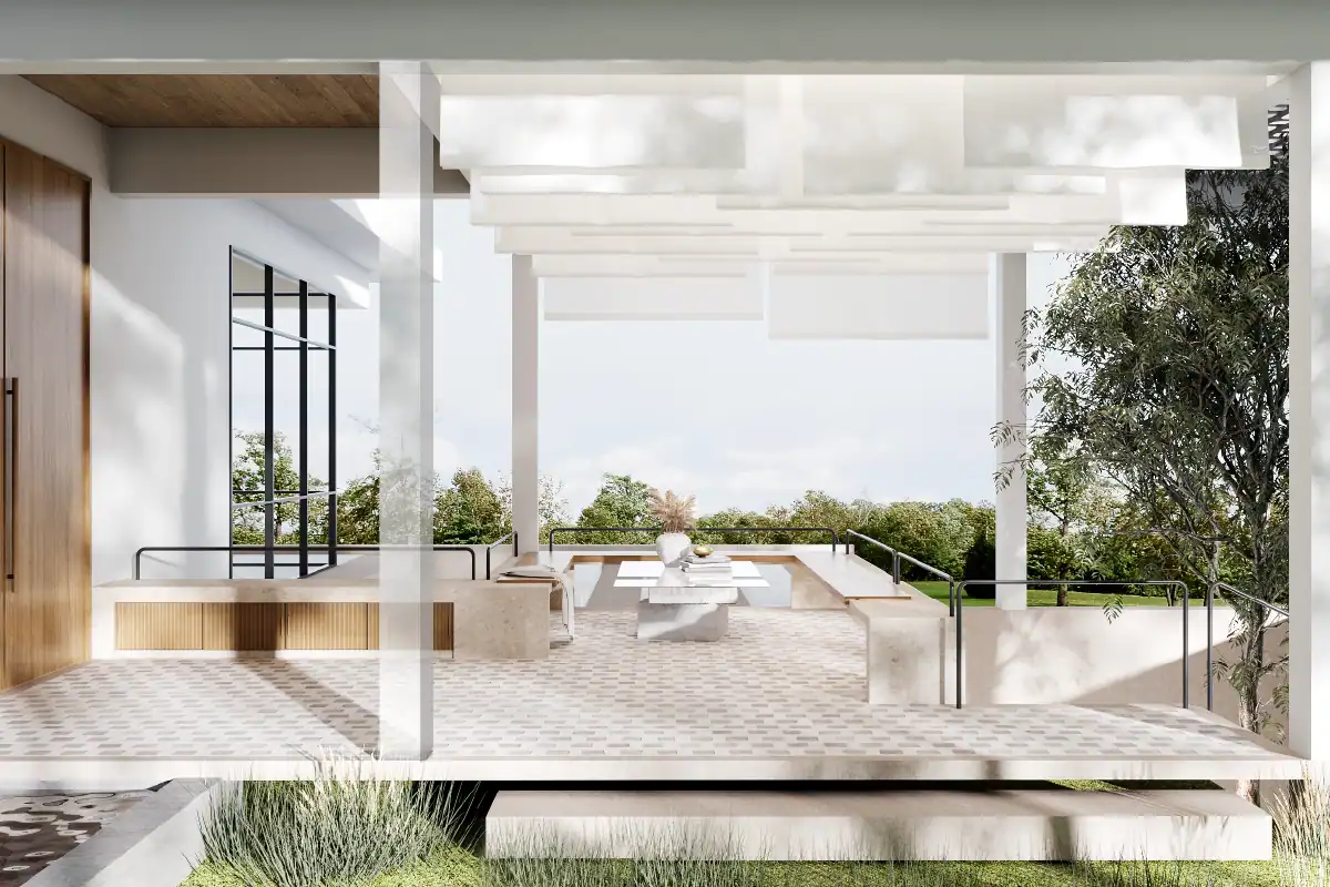This project was initiated by our client who wanted to reside his older life in a countryside and develop a sustainable model in the neighbourhood. With this initaitve, we focused on exploring sustainable material such as using local materials and modular design, and recycling waste in forms of terrazzo. Moreover, because our client is a notable strategy consultant, we have added design details to reflect this charactoristic throughout the house such as chess detail in built in design and floor pattern to reflect the symbol of strategy planning.